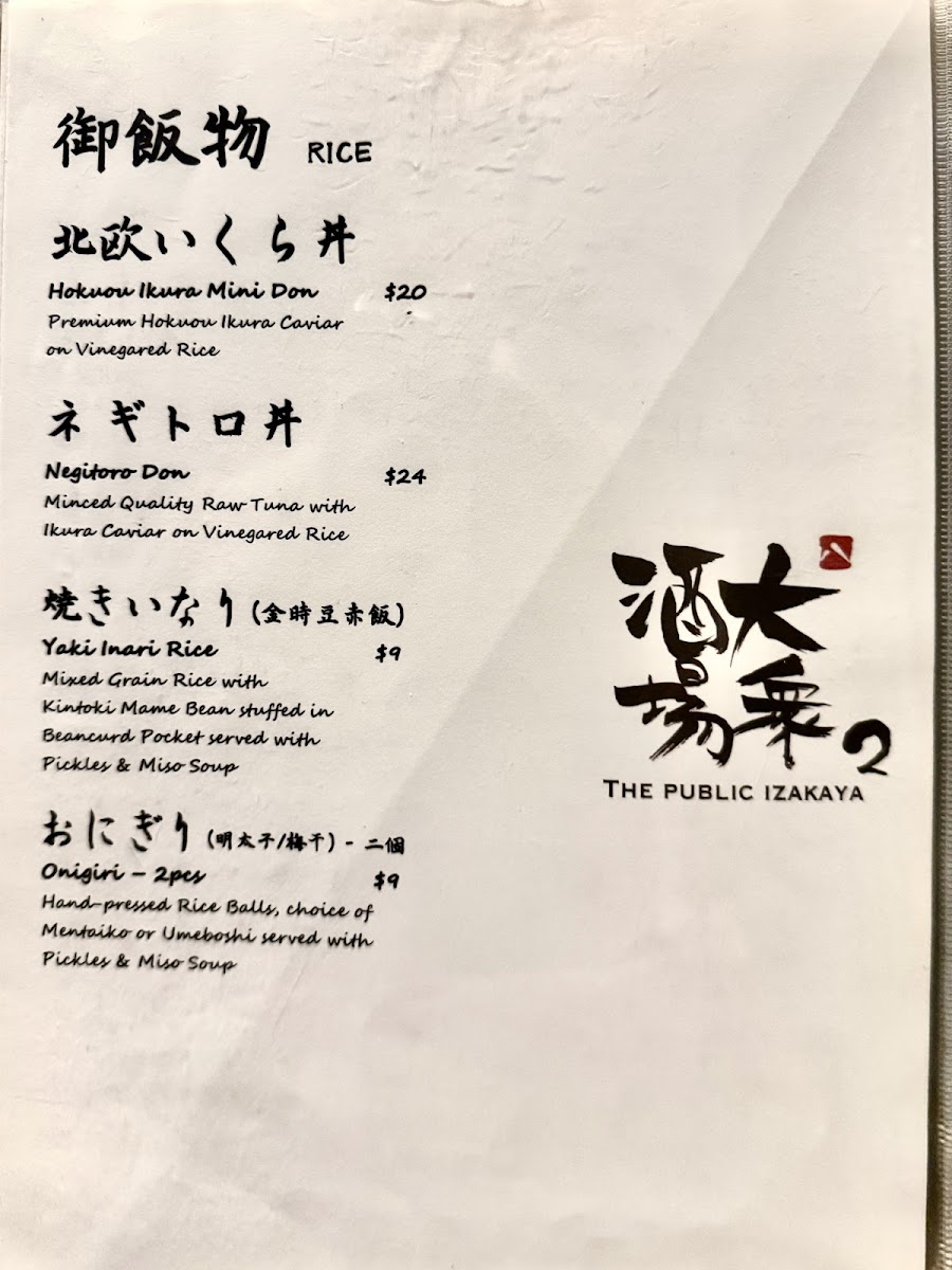 The array of appetizers, mains, and sides offers a delightful balance of textures and tastes, with ingredients that bring out the best of Japanese culinary craft. Pair it with a refreshing drink from their well-curated selection to complete the experience. Whether you're here for a quick bite or a leisurely meal with friends, the atmosphere and flavors at The Public Izakaya 2 will make you feel right at home.